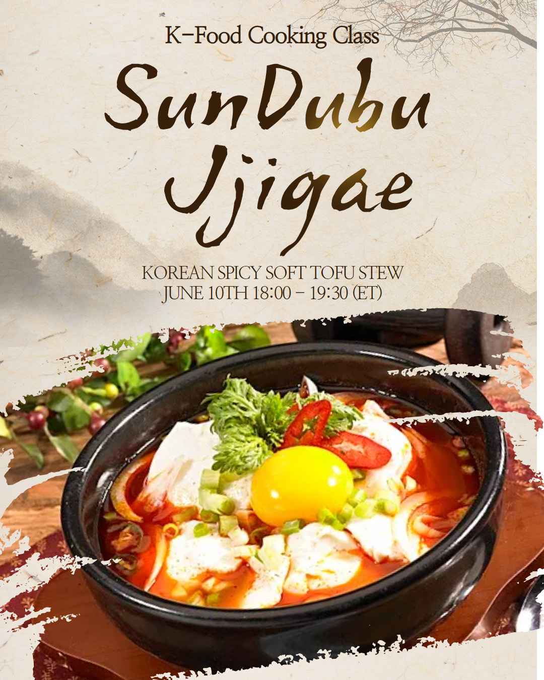 The class will be about Sundubu Jjigae (Korean Spicy Soft Tofu Stew), led by Chef Sunna Na. To register for the class, please fill out the registration form.