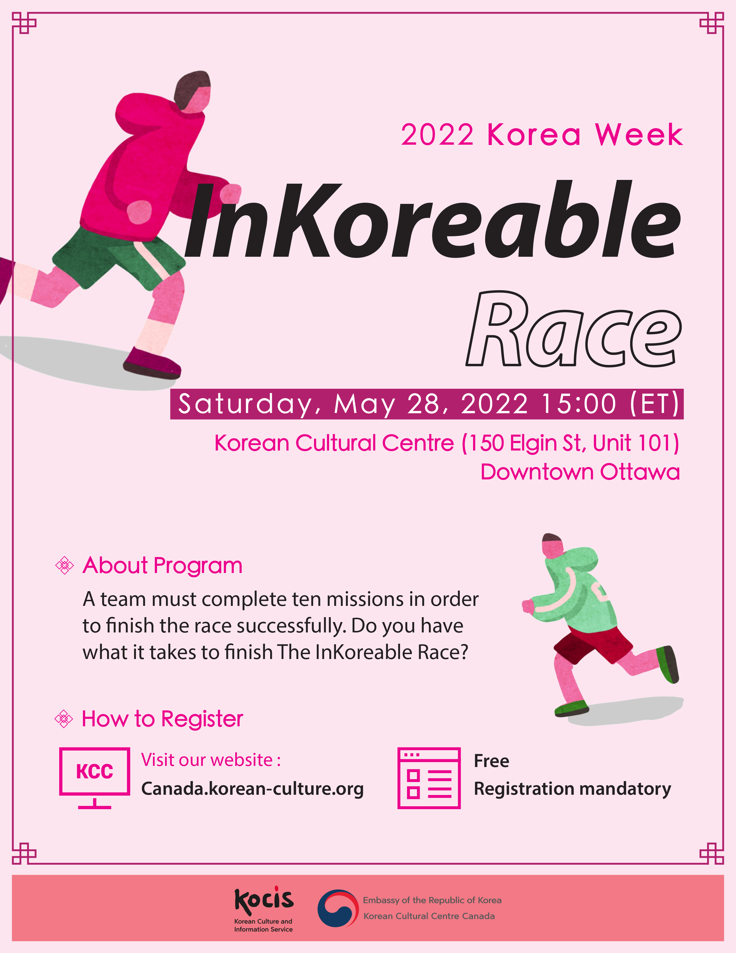 내용: 오타와 다운타운을 가로지르는 인코리아블 레이스는 캐나다인들이 자신들의 한국에 대한 이해와 지식을 시험해 볼 수 있는 행사다